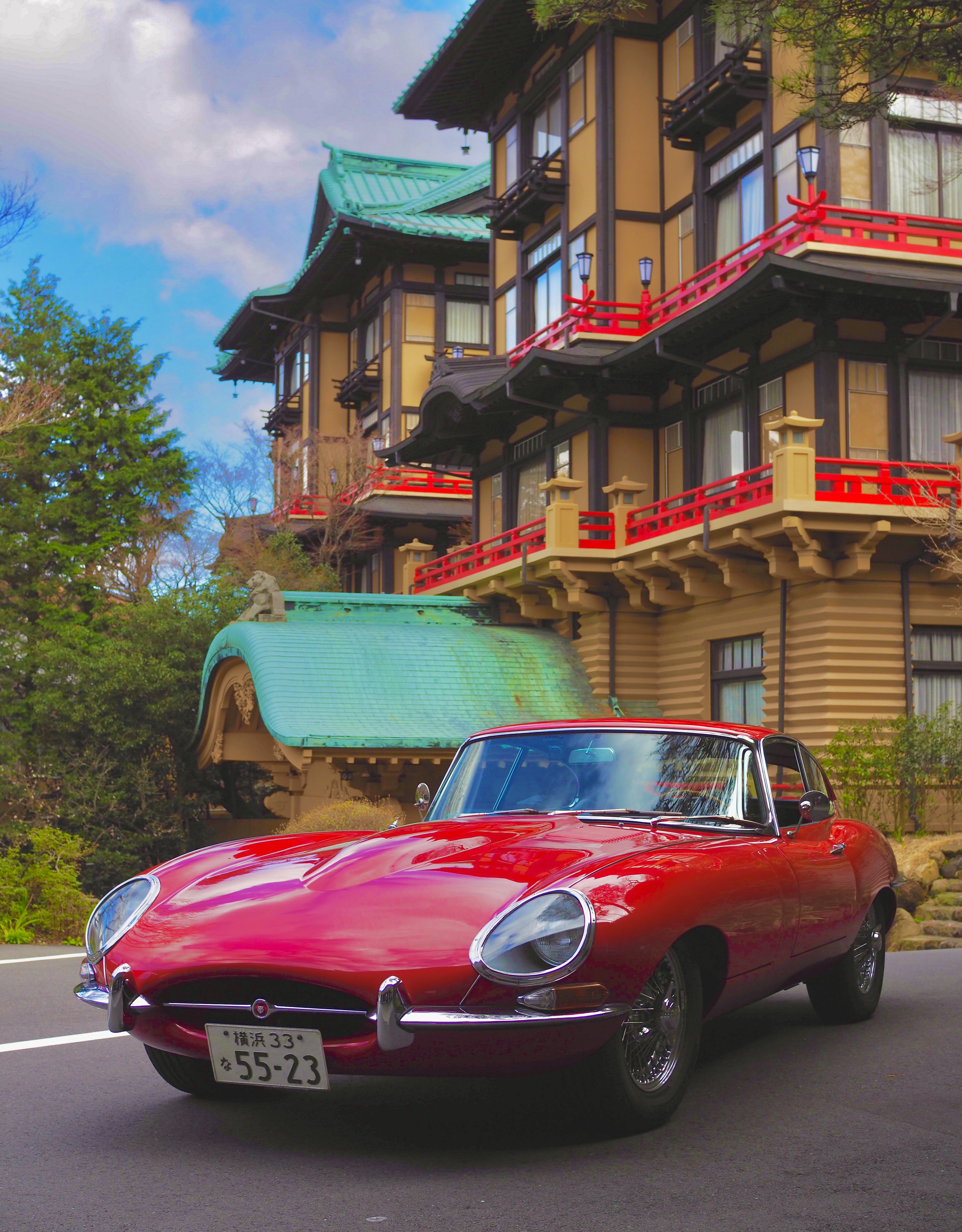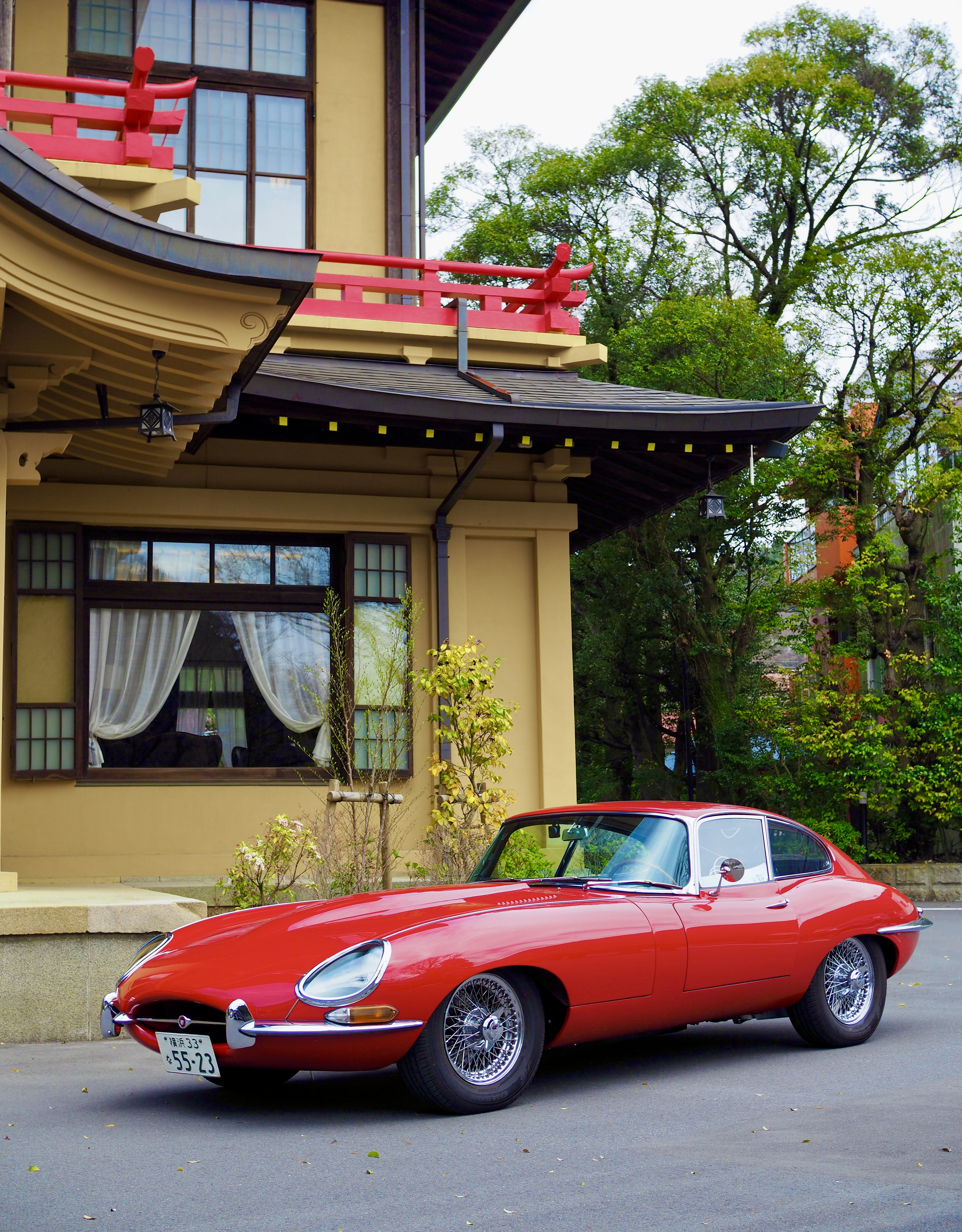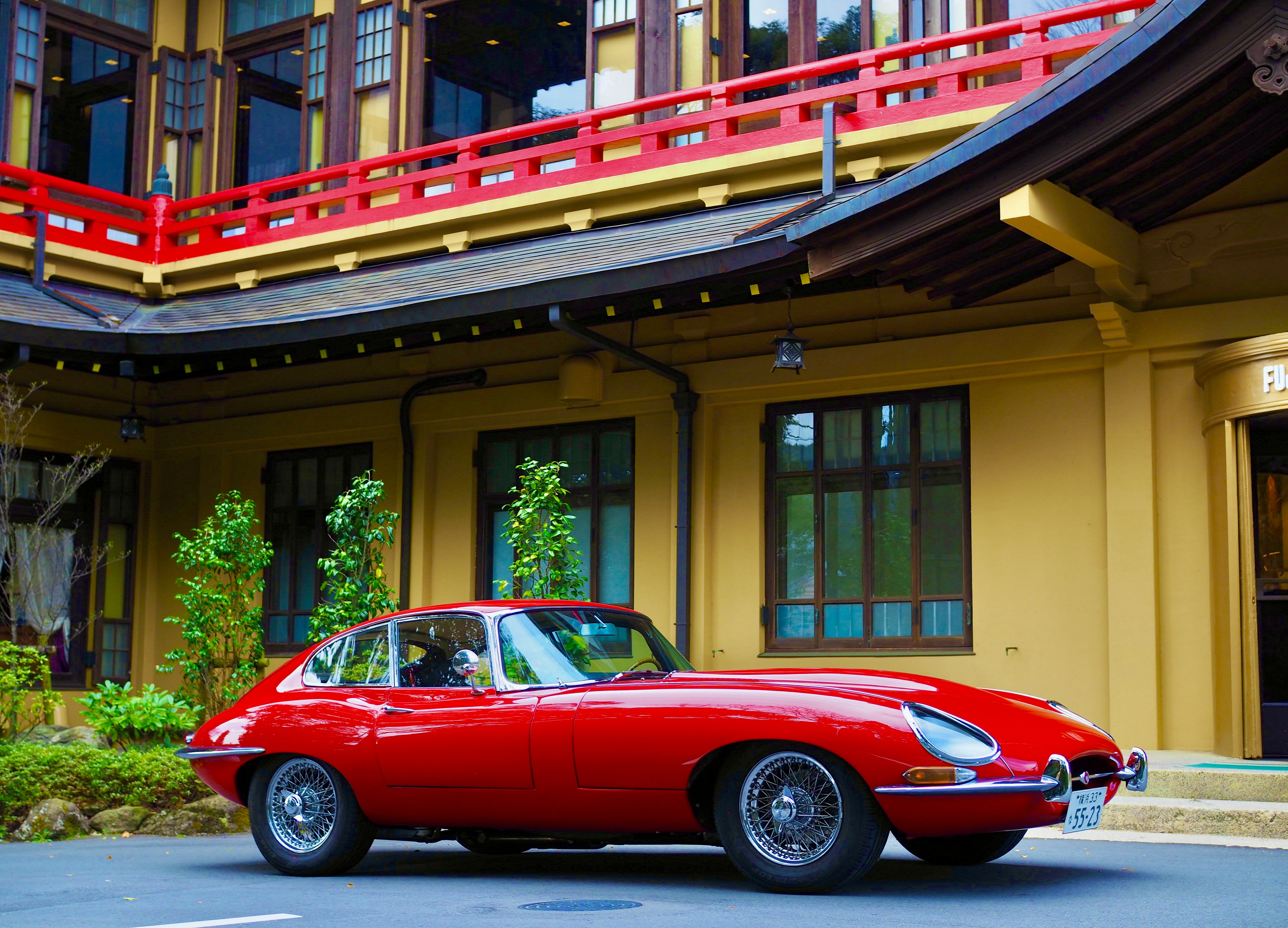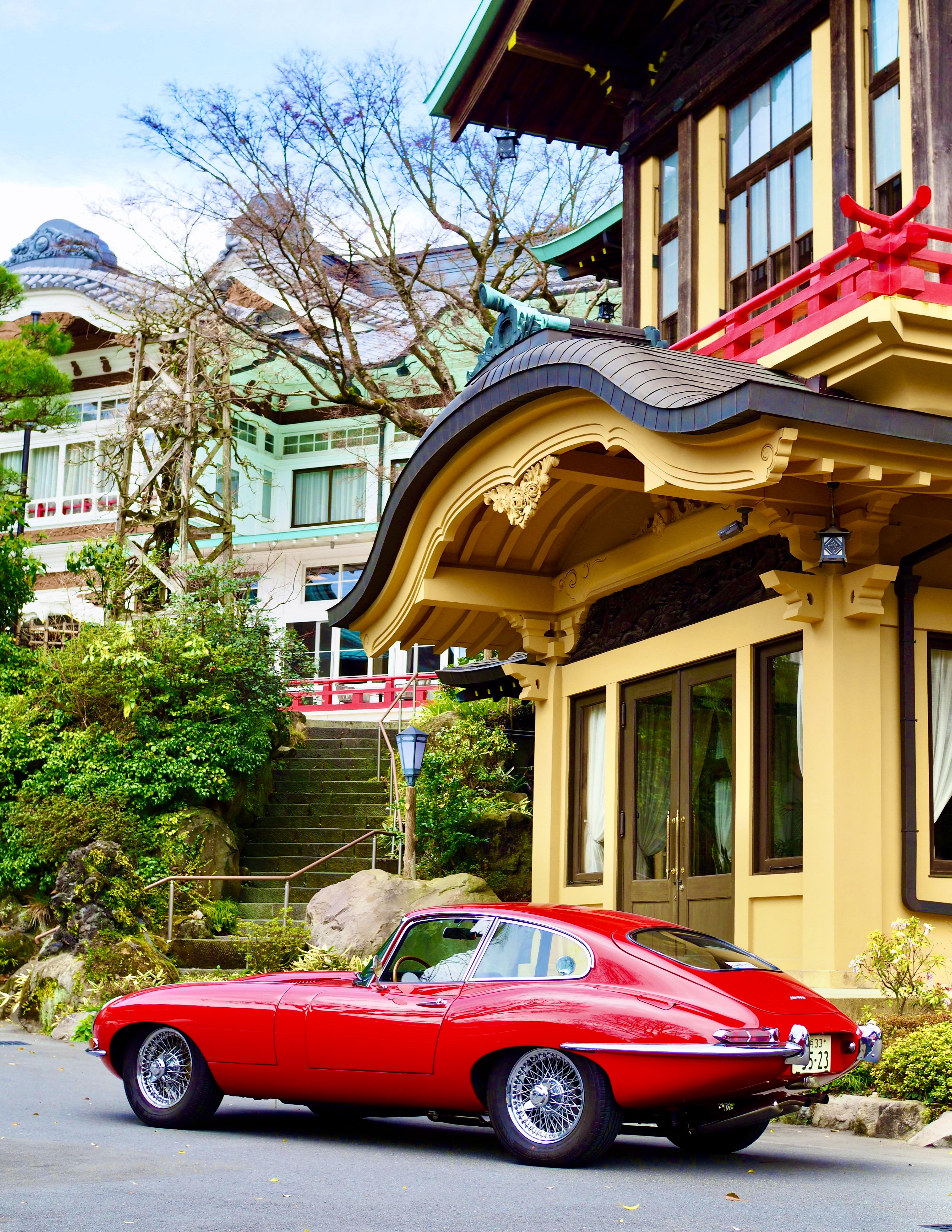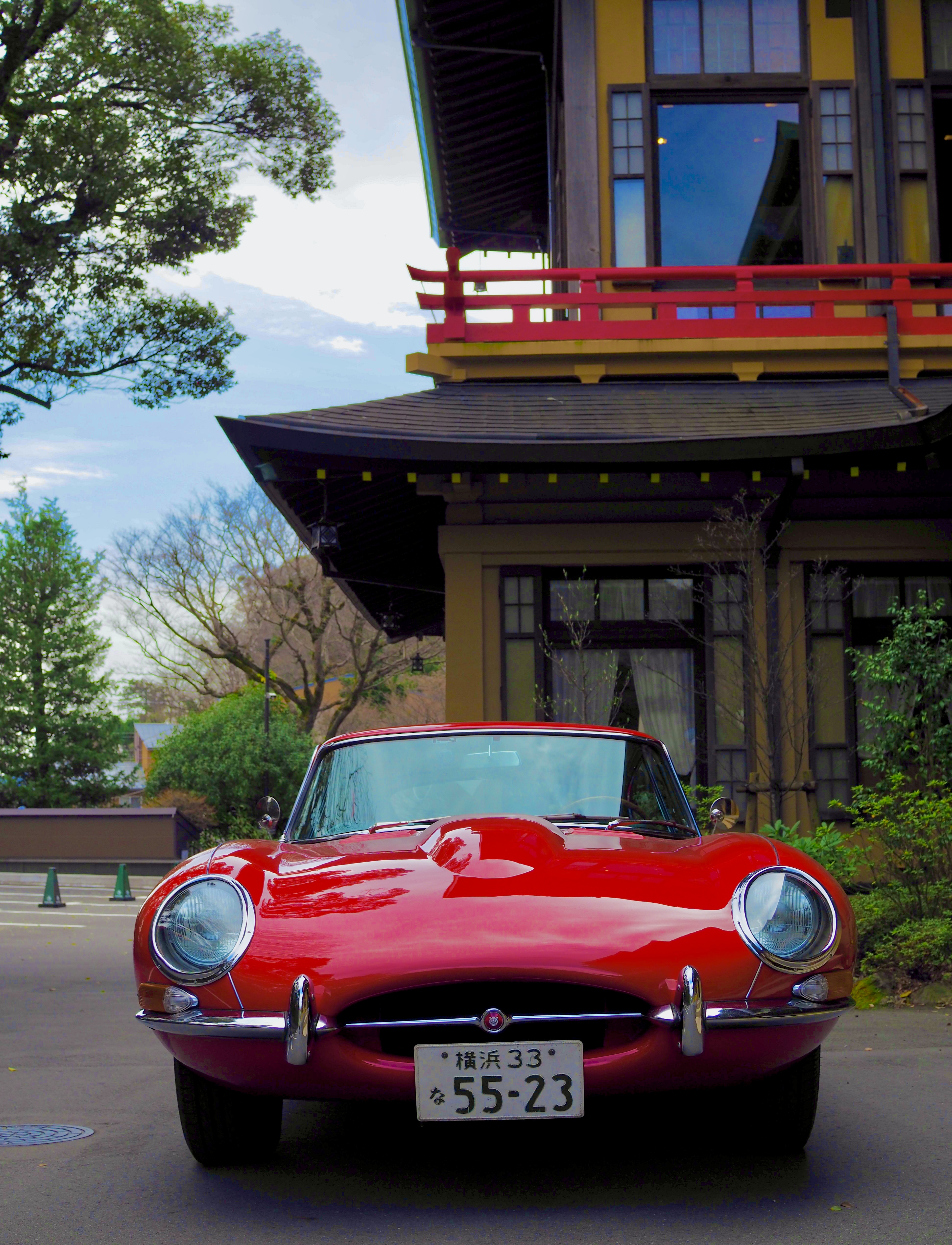 朱赤の欄干がE-typeと素敵なコラボです。