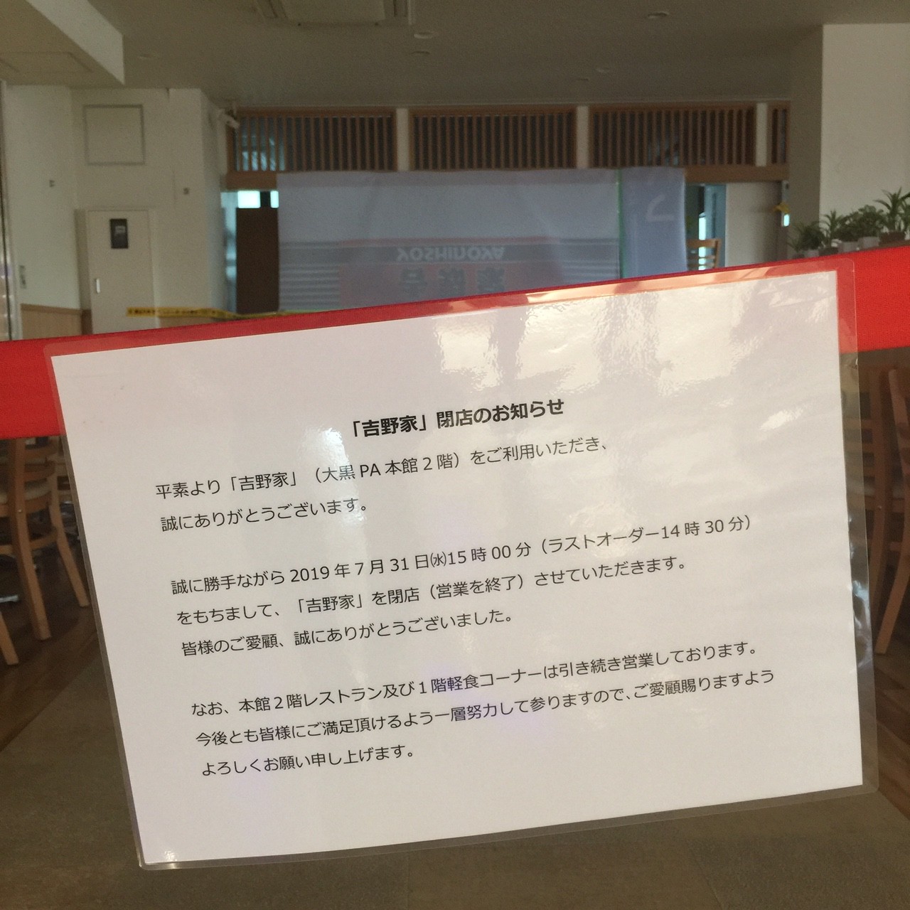 なんと吉野家、7/31いっぱいで閉店しちゃってました・・・