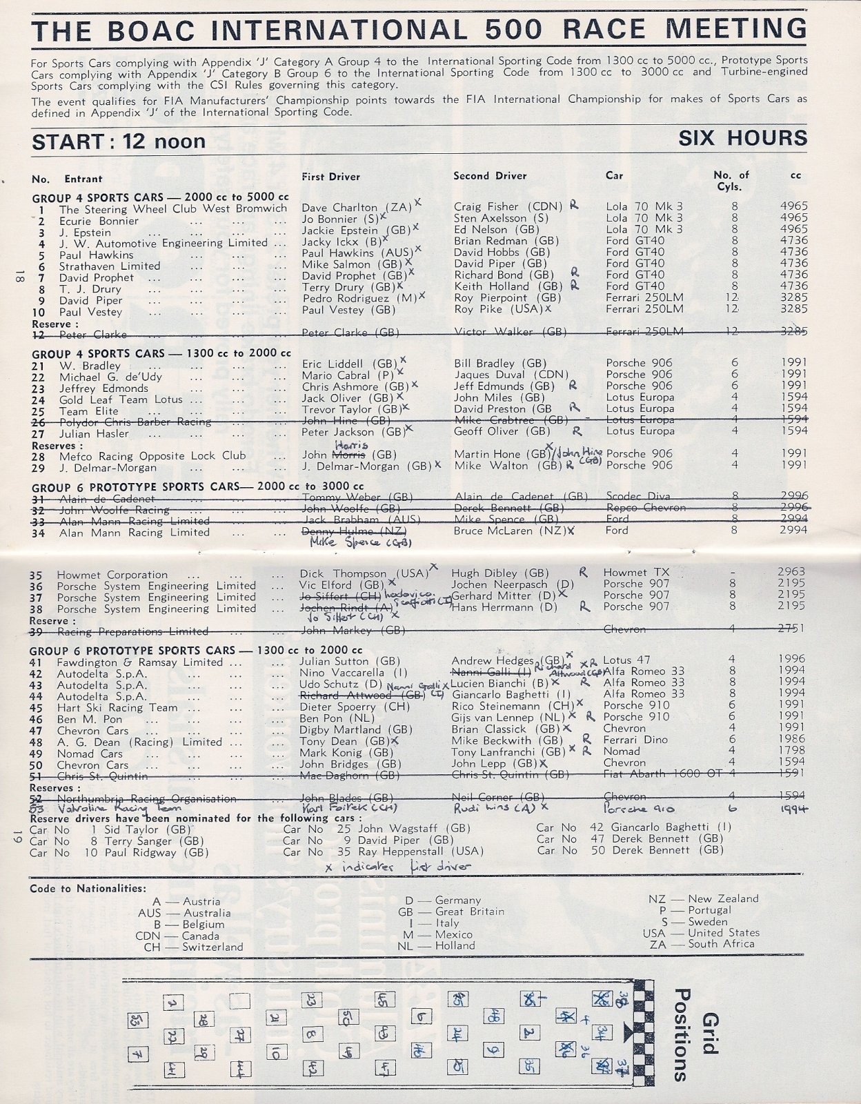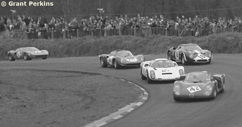 Ford GT40、Porsche 907 や 906、910、デビッド・パイパーのグリーンの Ferrari 250LM、Lola T70、Alfa Romeo Tipo33、Chevron BMW、Lotus 47、Dino 206S・・・