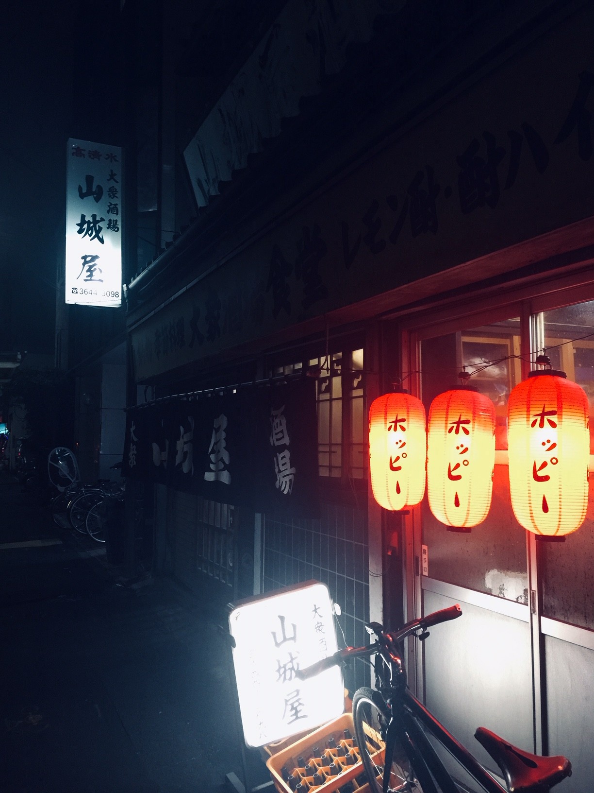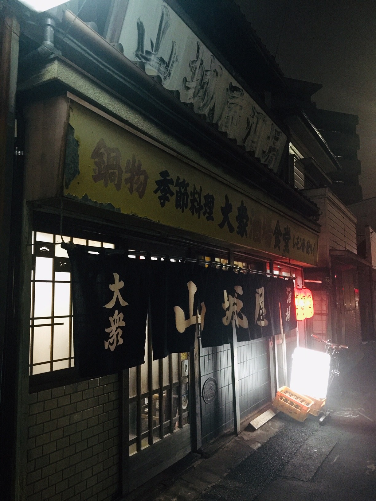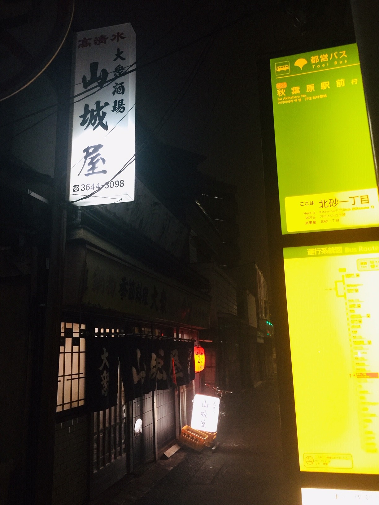 待望の「山城屋酒場」は、都バスの停留所の暗がりの前にあまりにもポツン・・・と建っていました。