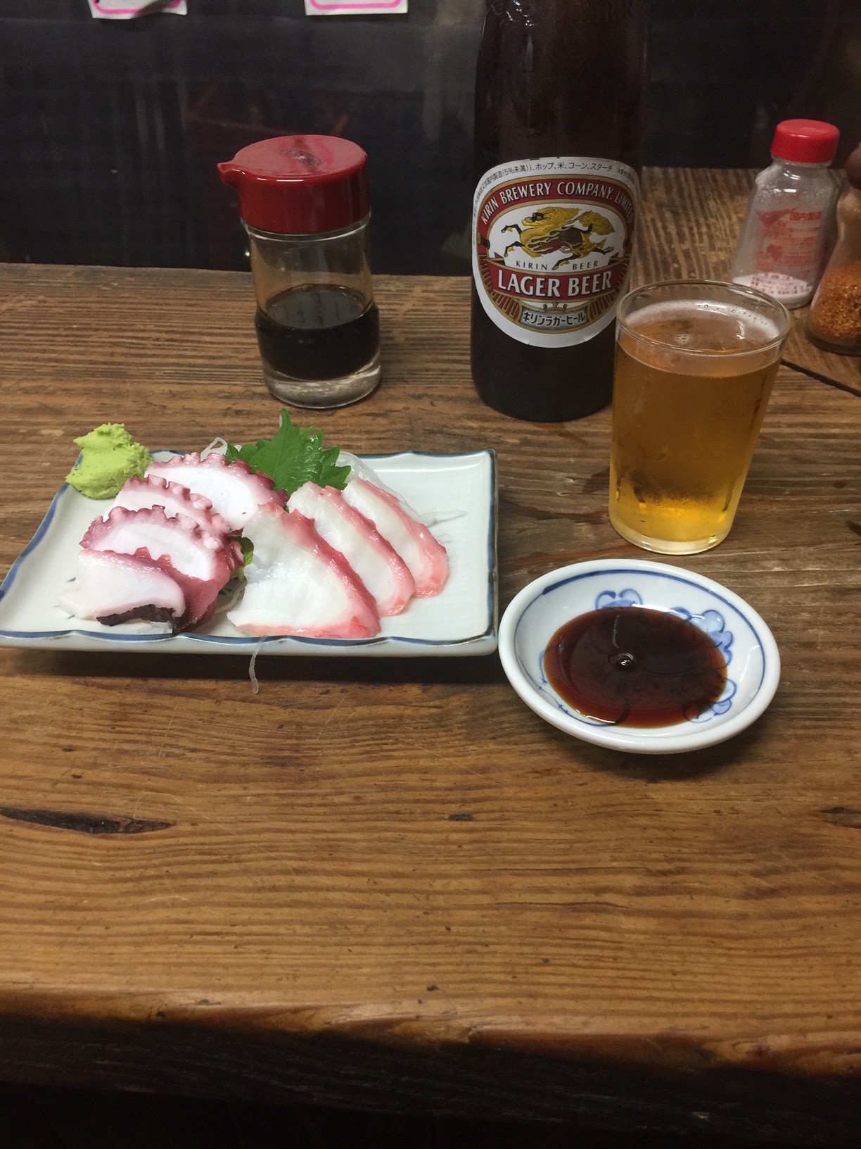 で、まずオードブルとして頼んだのはタコの刺し身二種盛り。