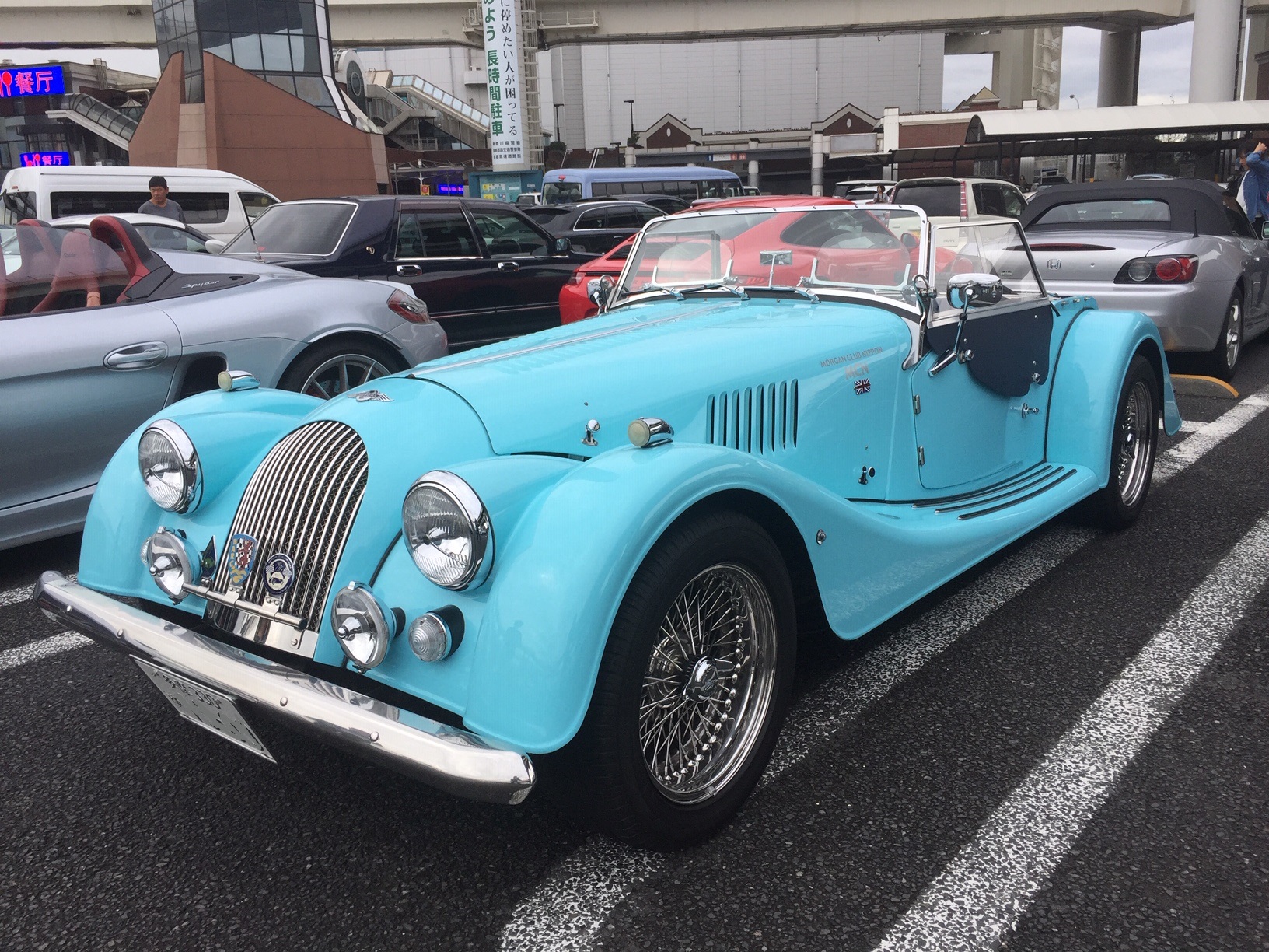 そして上品な薄いブルウメタリックのランチア・アッピア・ザガートに続く鮮やかな水色のモーガン!