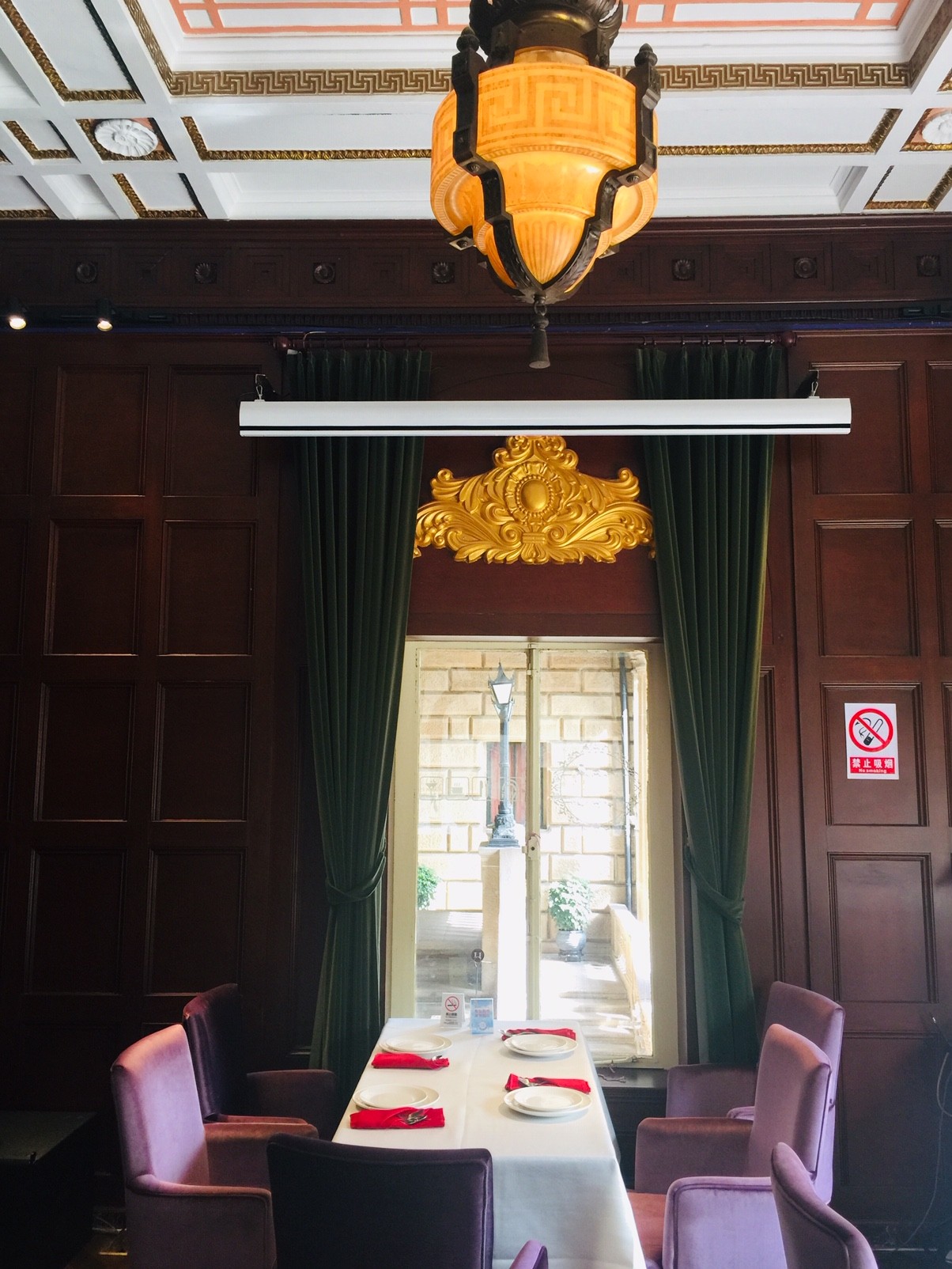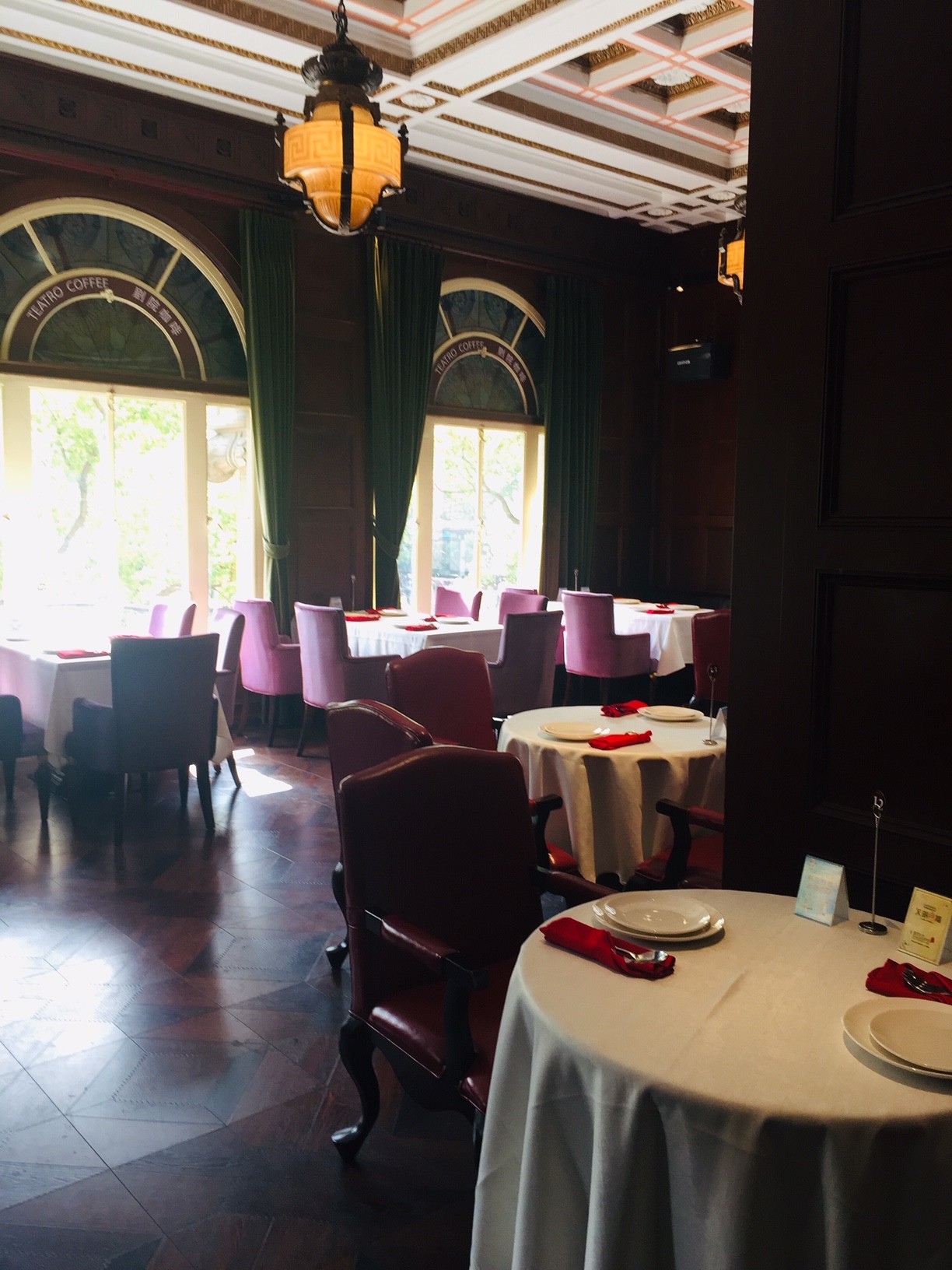 ボルドー、ラベンダー、真紅で織りなされた内装はなかなか素敵な光景です。