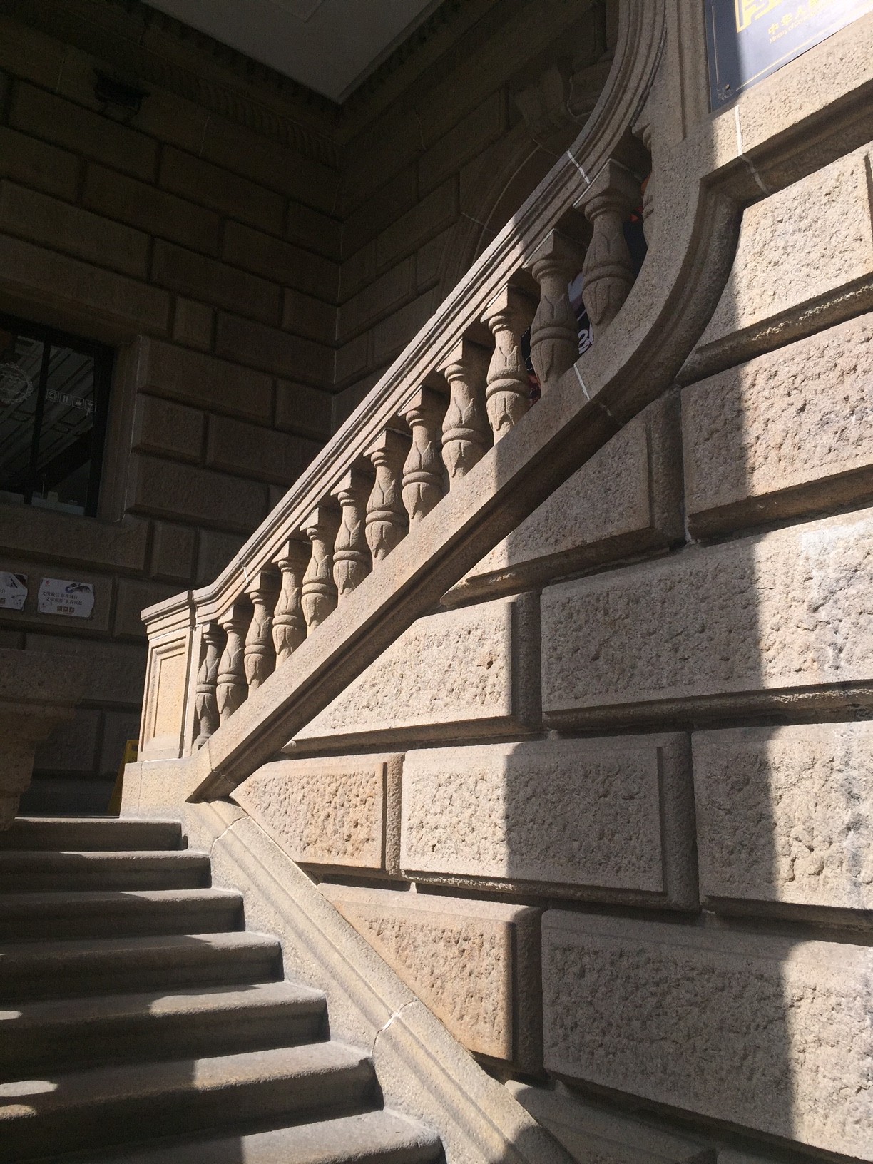 光と影が美しい階段を下って、