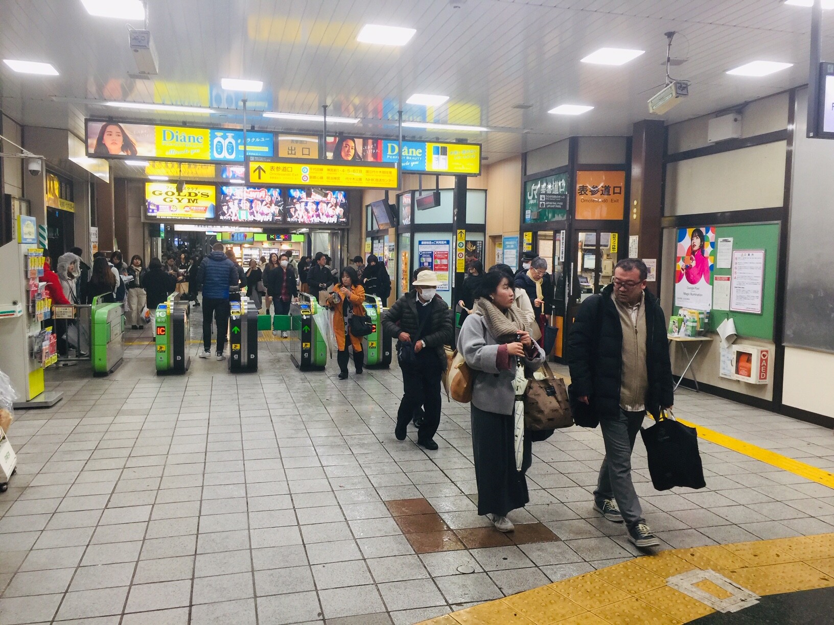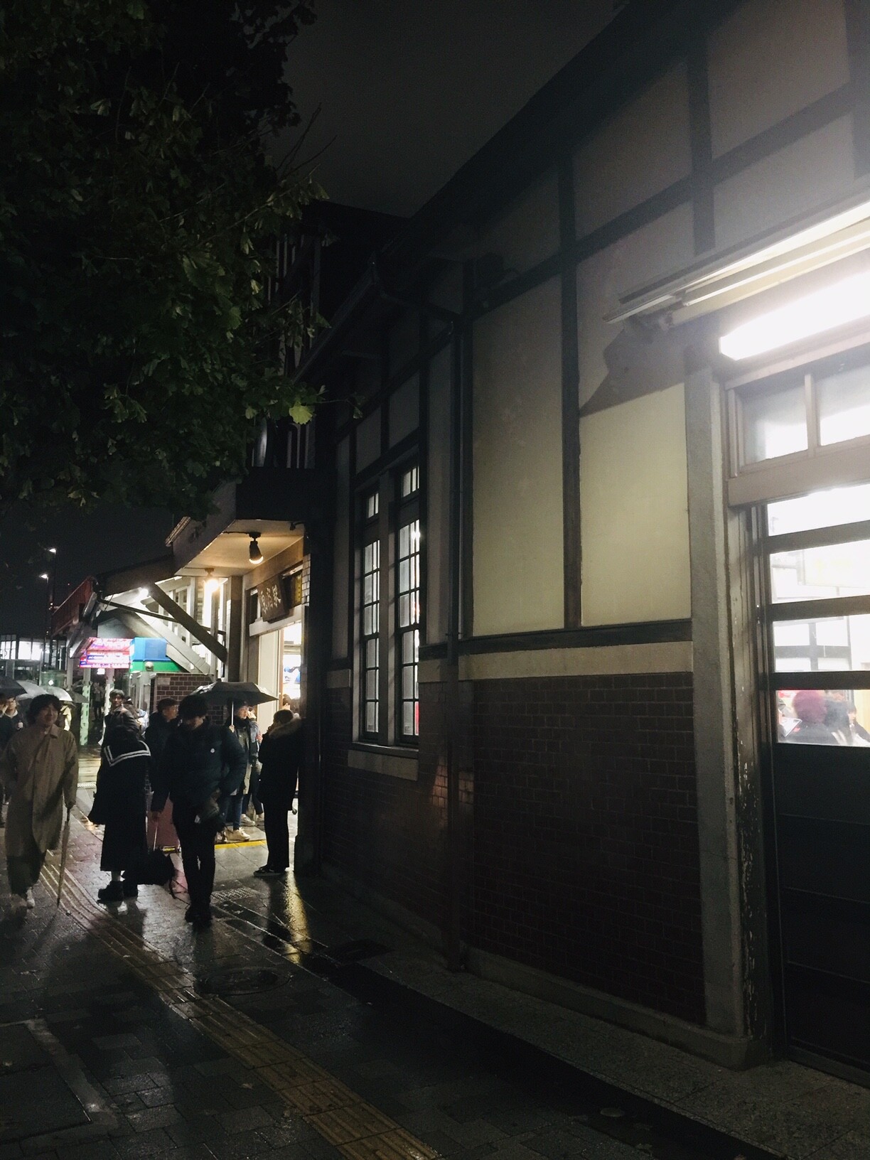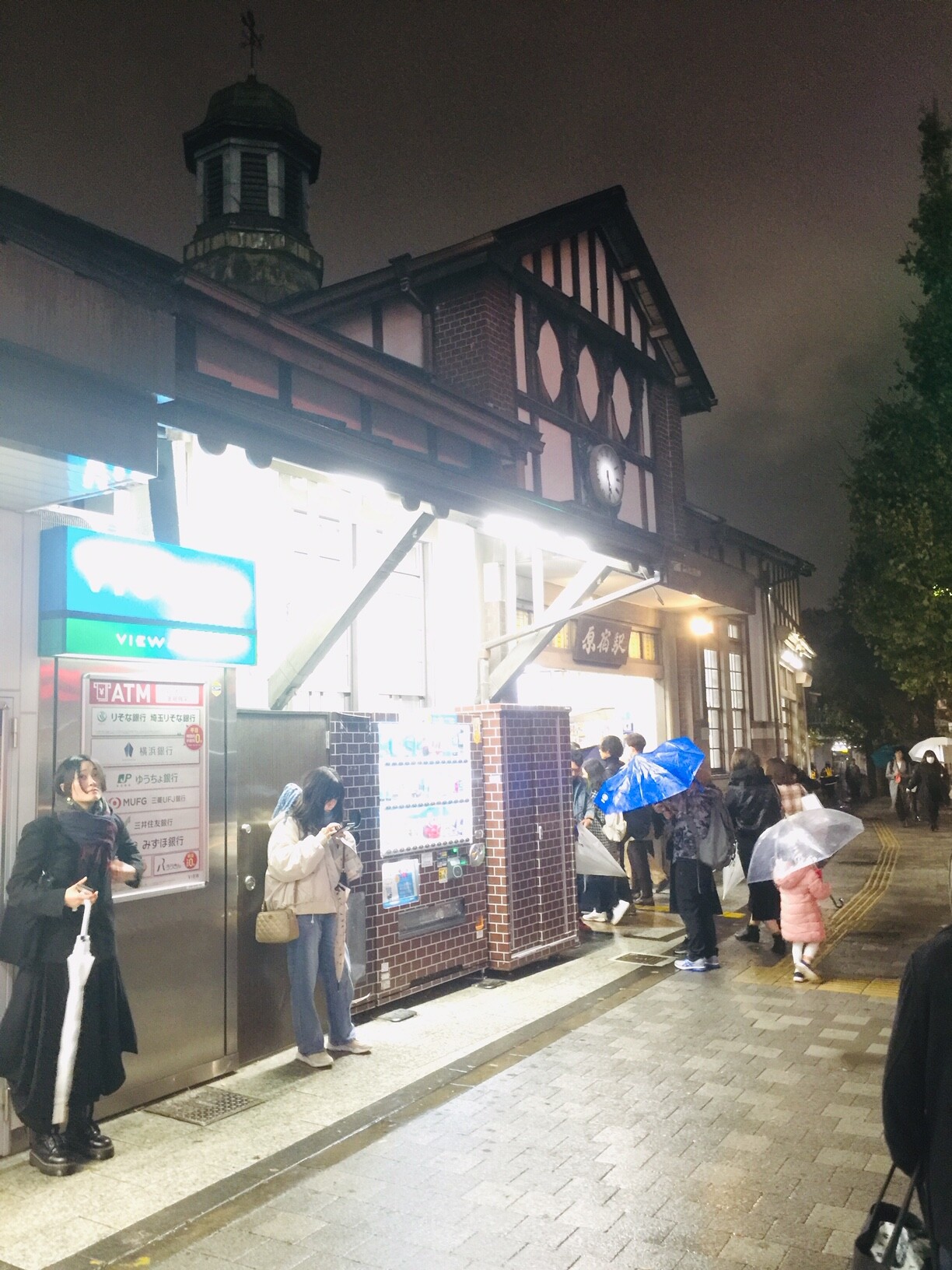 クラシックな駅舎には、次から次へと傘を指した人々が吸い込まれていくのですが、