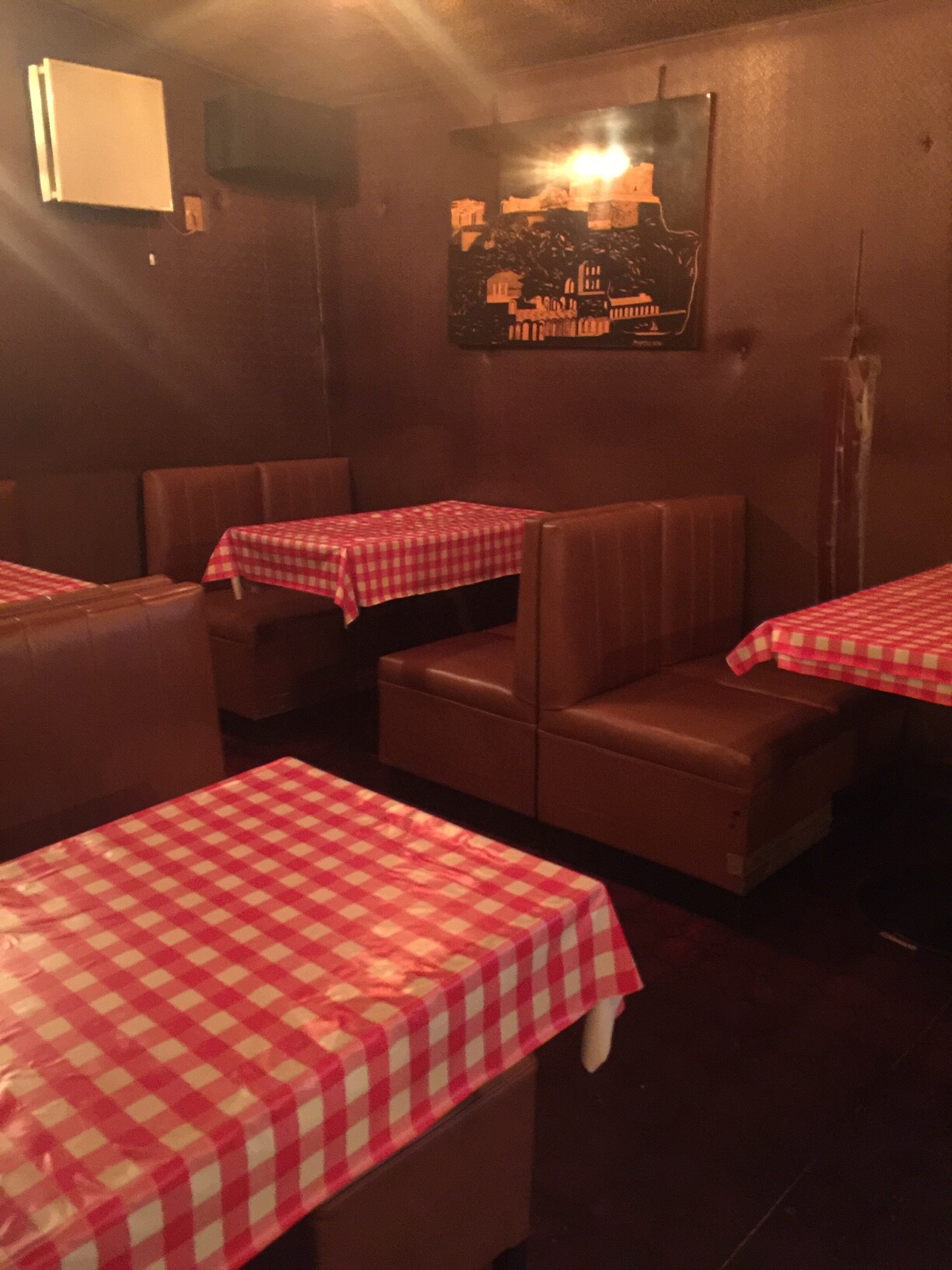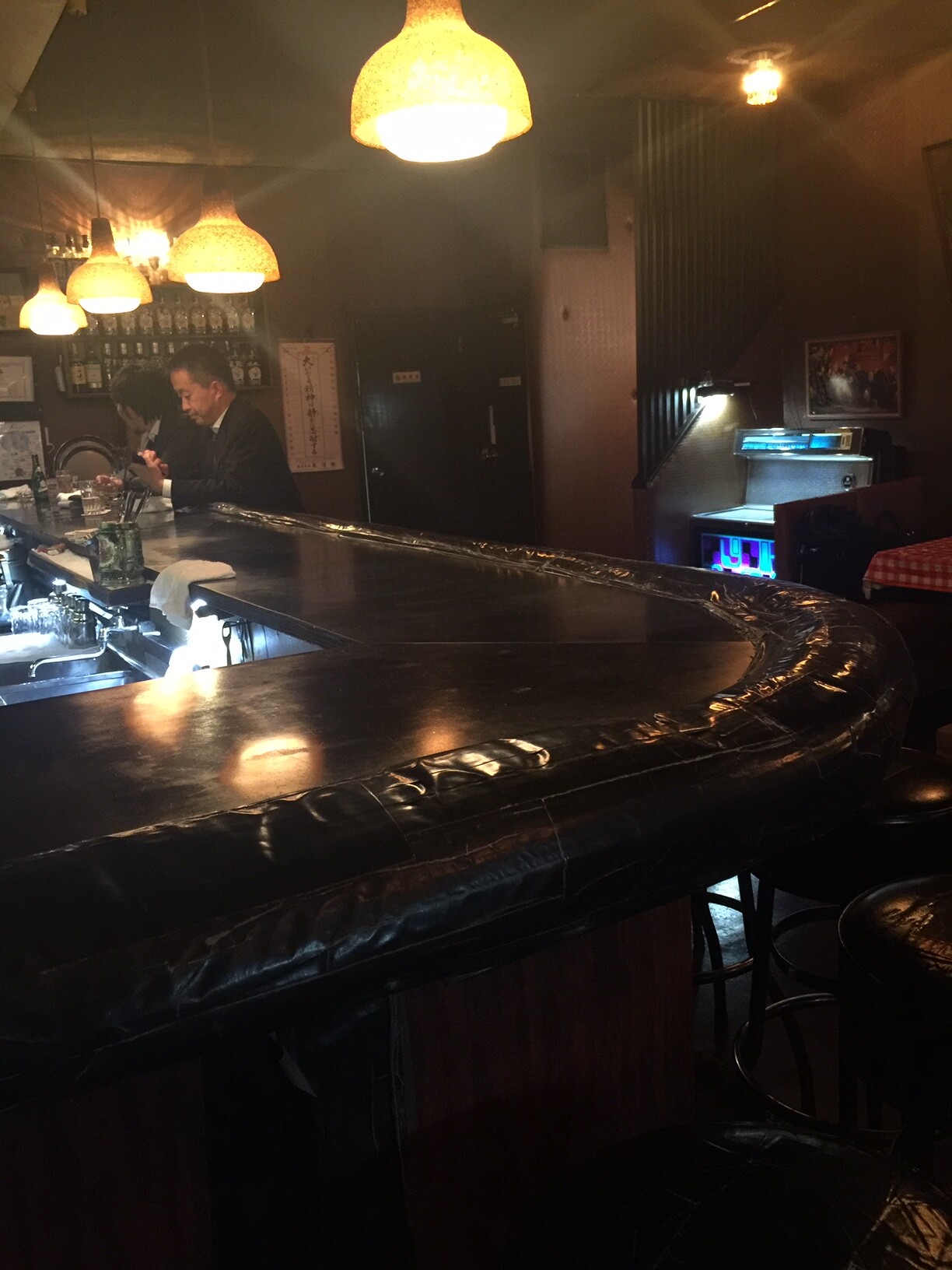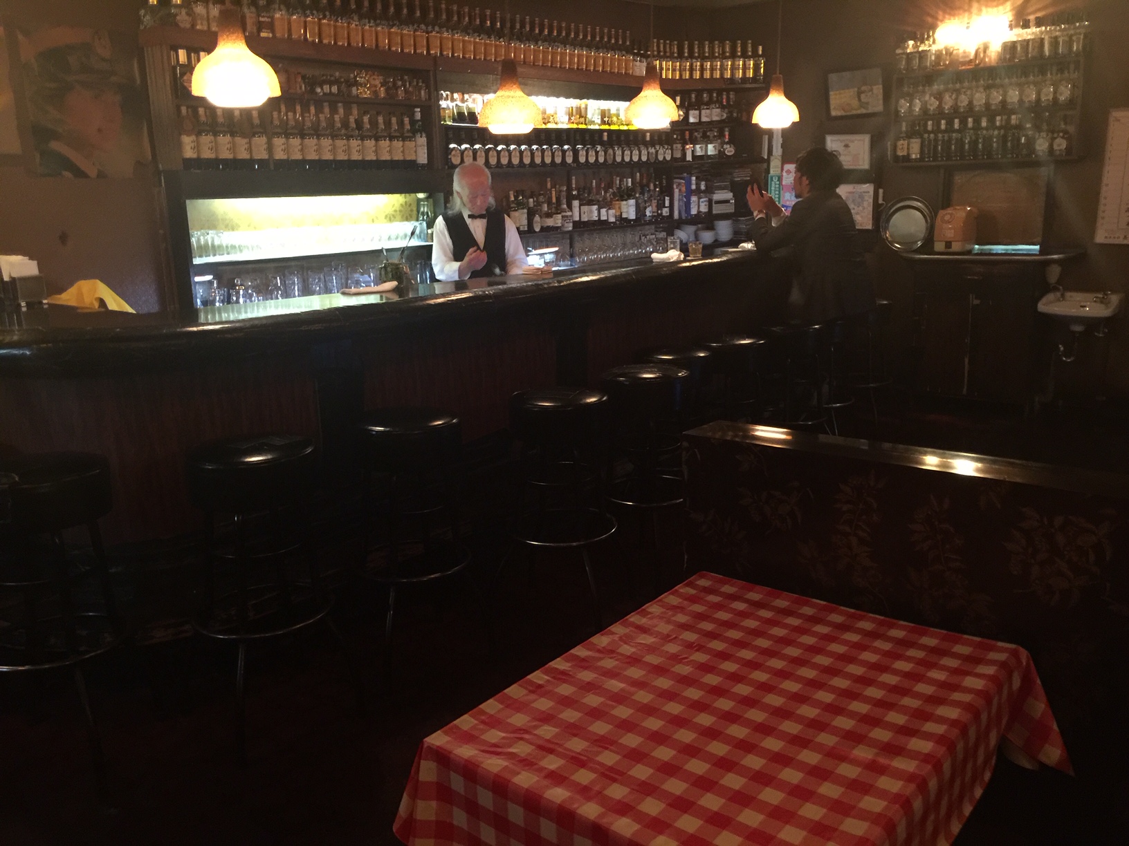このバーはギンガムチェックのクロスで、大昔のイタリアンスナックみたいですね。