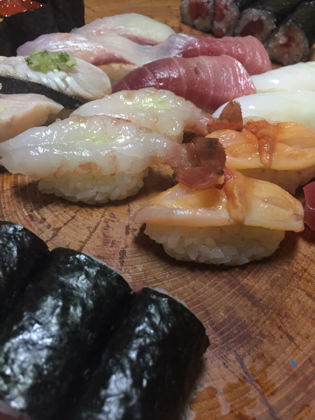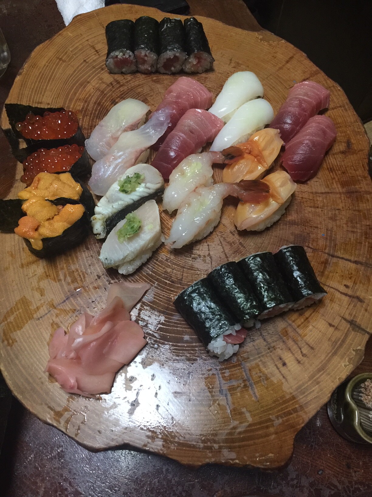 で、いよいよ同じく切り株に盛られた握り寿司~