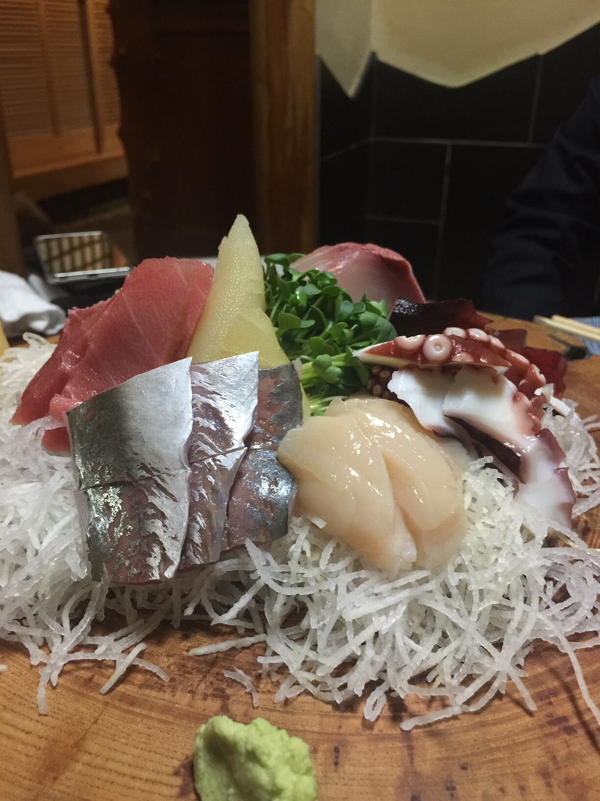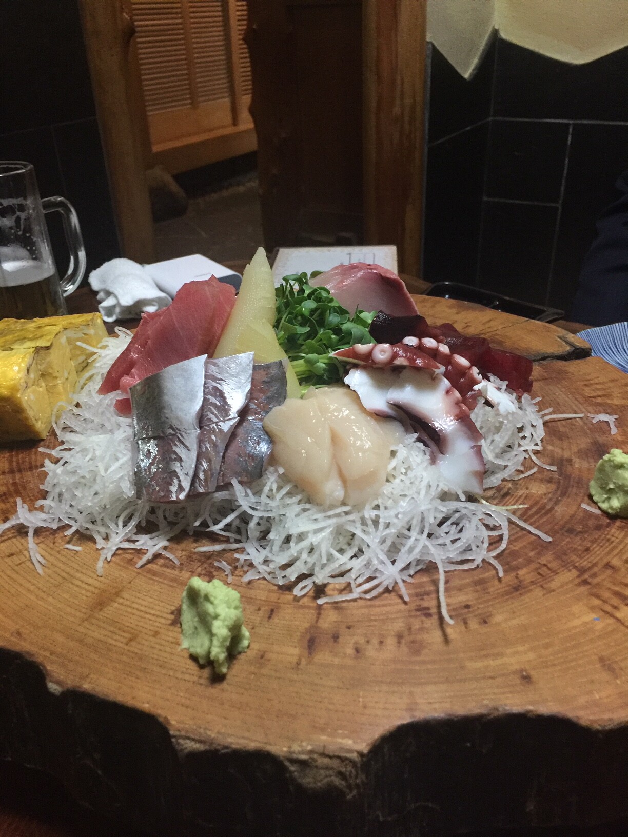 続けざまに切り株に載った刺し身・・・