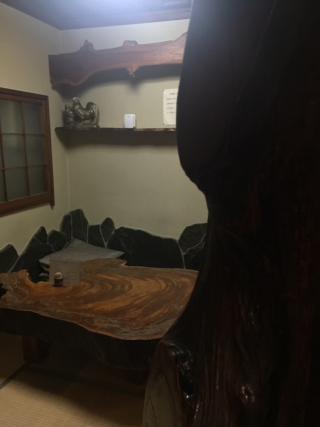 真ん中には巨大な切り株卓が鎮座しているため足をブツけないようにしなくてはなりません。
