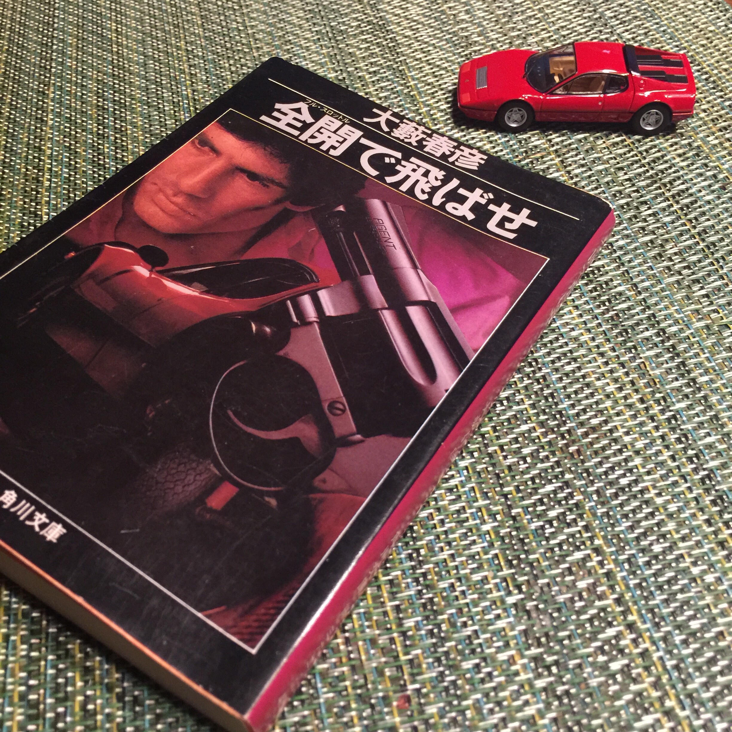 表紙カバーには拳銃とフェラーリ365GT/4 BB!