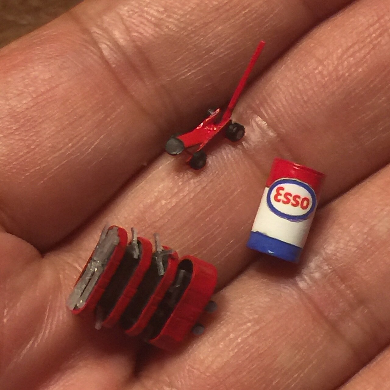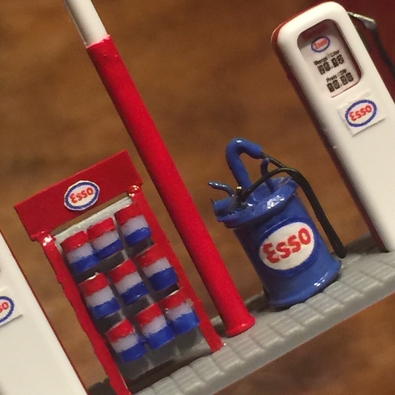 このESSO角型オイル缶のディスプレーラックはちょっと塗装に失敗・・・
