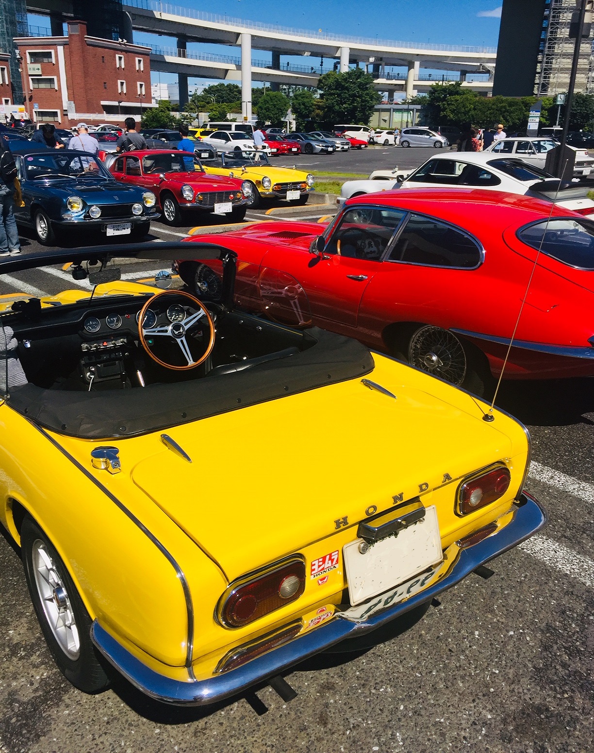 2台の黄色いホンダS、ダークレッドのホンダSクーペ、ASA、