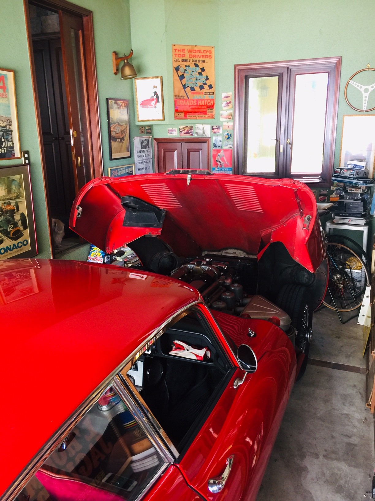 ガレージに戻って、放熱のためにボンネットをオープンして、