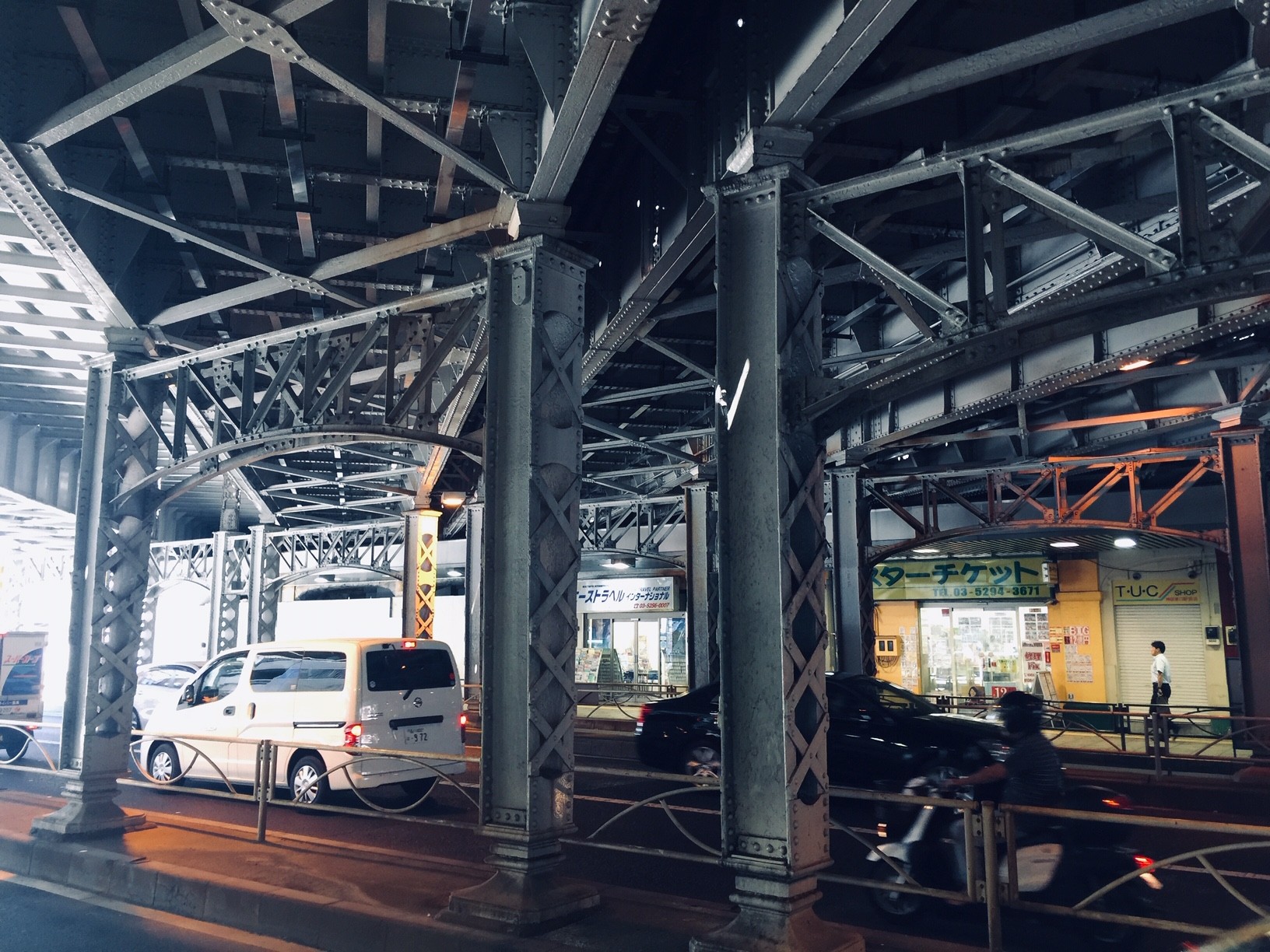 リベットだらけの昔懐かしいJRのガード下を歩いて大きな交差点を渡る・・・