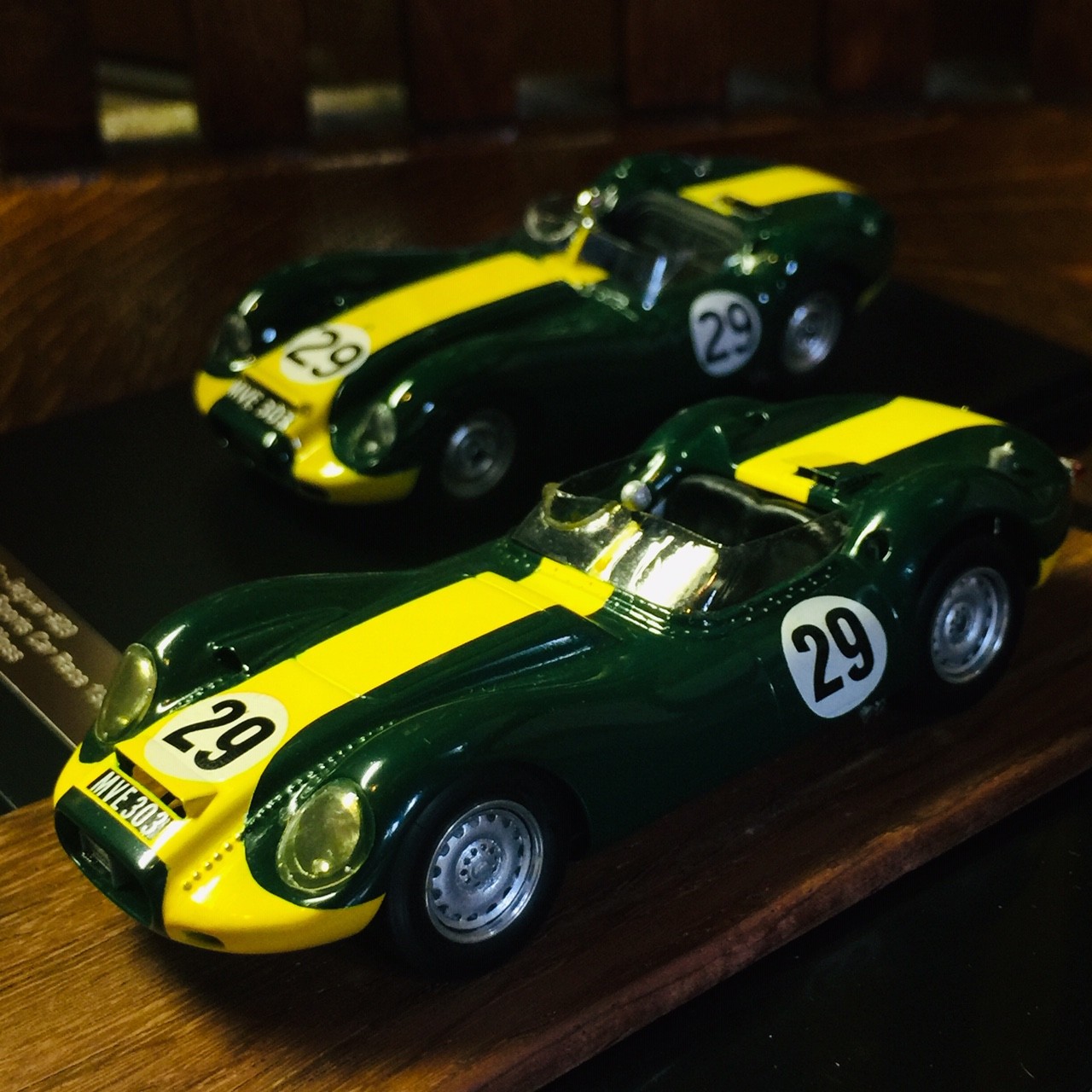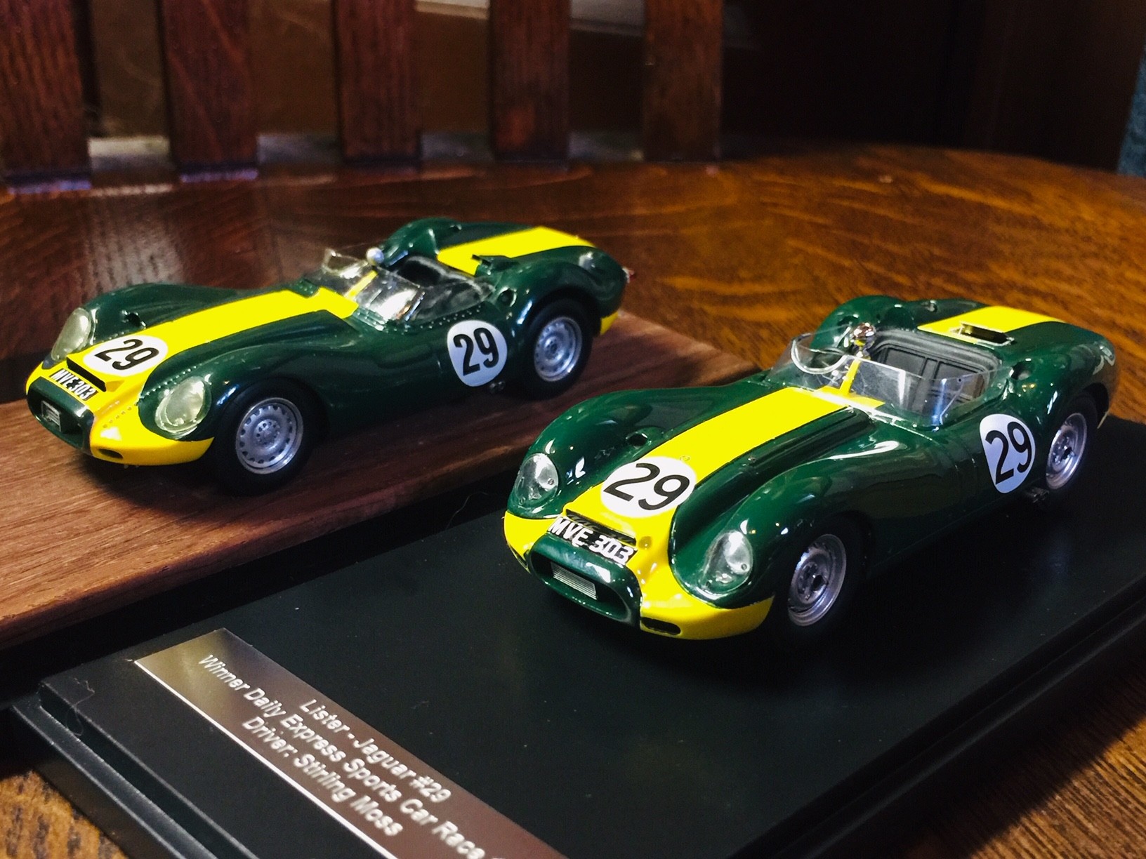 では約30年の開きがある、60年前に活躍した美しさと力強さを兼ね備える英国スポーツ/レーシングカーの傑作、リスタージャガーの2つのモデルカーを見比べてみましょうか~